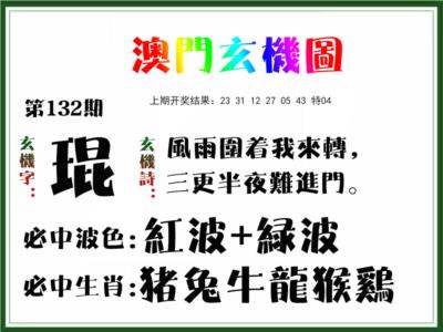 | 132期: ⑤肖 | 牛龙虎鼠猴 | ????中 |